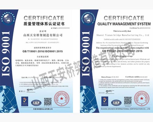 山西天安橋架制造有限公司是一家生產(chǎn)電纜橋架、母線槽的大型廠家,主要生產(chǎn):槽式橋架、托盤(pán)式橋架、梯級(jí)式橋架、大跨距橋架、母線槽有空氣型、密集型、耐火型、鋁合金等以及通風(fēng)管、可根據(jù)客戶要求定制各種型號(hào)各種規(guī)格,表面處理有熱鍍鋅、防火噴塑、防火漆、熱鍍鋅等,產(chǎn)品廣泛應(yīng)用于石油、化工、治金、電力、紡織、通訊、高層建筑等各個(gè)領(lǐng)域。產(chǎn)品具有外形美觀,耐腐蝕性強(qiáng),安裝靈活方便,品種齊全等特點(diǎn)。